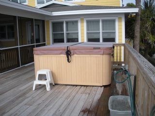 This lovely ocean front home offers a fenced yard, 2 oceanside decks with built in seating. Private walkover to the beach, screened porchwith a swing bed and additional furniture. 2 outside Showers both with hot andcold water. The designer kitchen features a dishwasher, disposal, side-by-sidefridge, ice machine, coffee maker, coffee pot and grinder kitchen with ceilingfan, plus an extra Beverage kitchen. Huge Living area -3 couches, love seat,ottoman, chair w/ottoman, view of the ocean, wireless internet, flat screen HDtv. Dining table seats 10 people. Breakfast bar seats 4 people. 2 highchairsare also available. THIS HOUSE RENTS SATURDAY TO SATURDAY IN THE SUMMER.